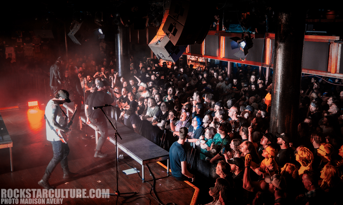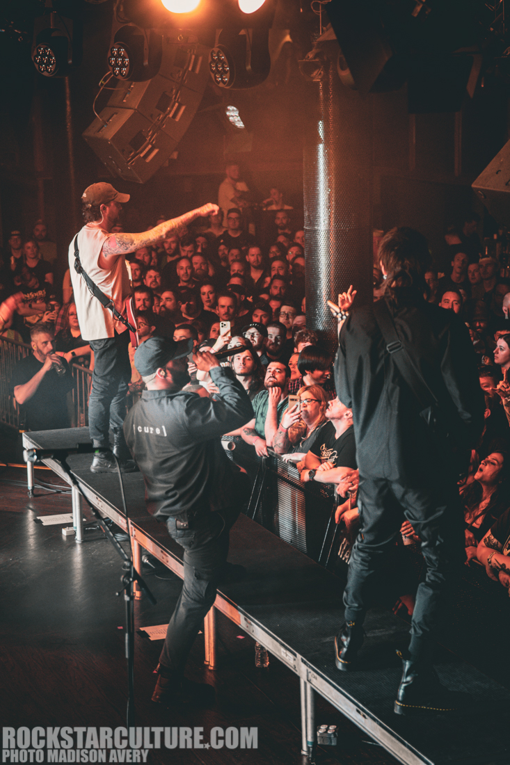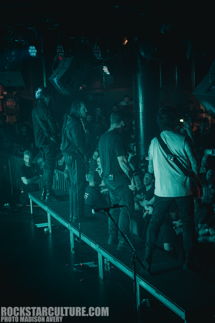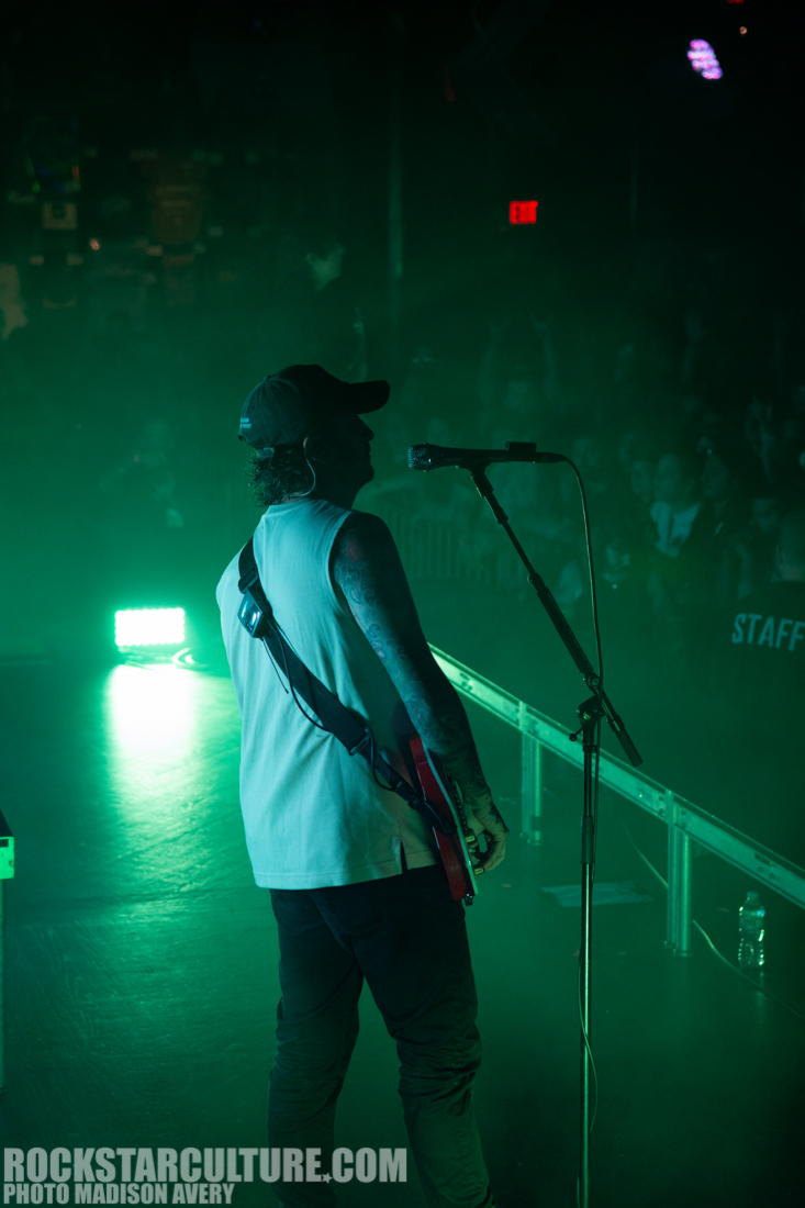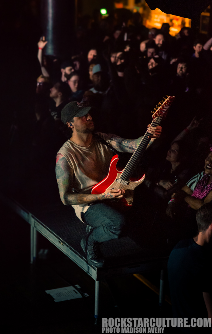 Fans were buzzing with excitement when ERRA took the stage. The room was overflowing with high energy, people were moshing, and a teletubby and banana were crowd surfing, catching everyone’s attention. At one point lead guitarist Jesse Cash even jumped down from the stage and went up on the balcony then lead singer JT Cavey shared a drink and cheered with a fan.