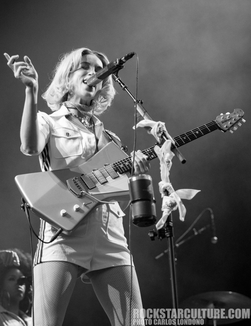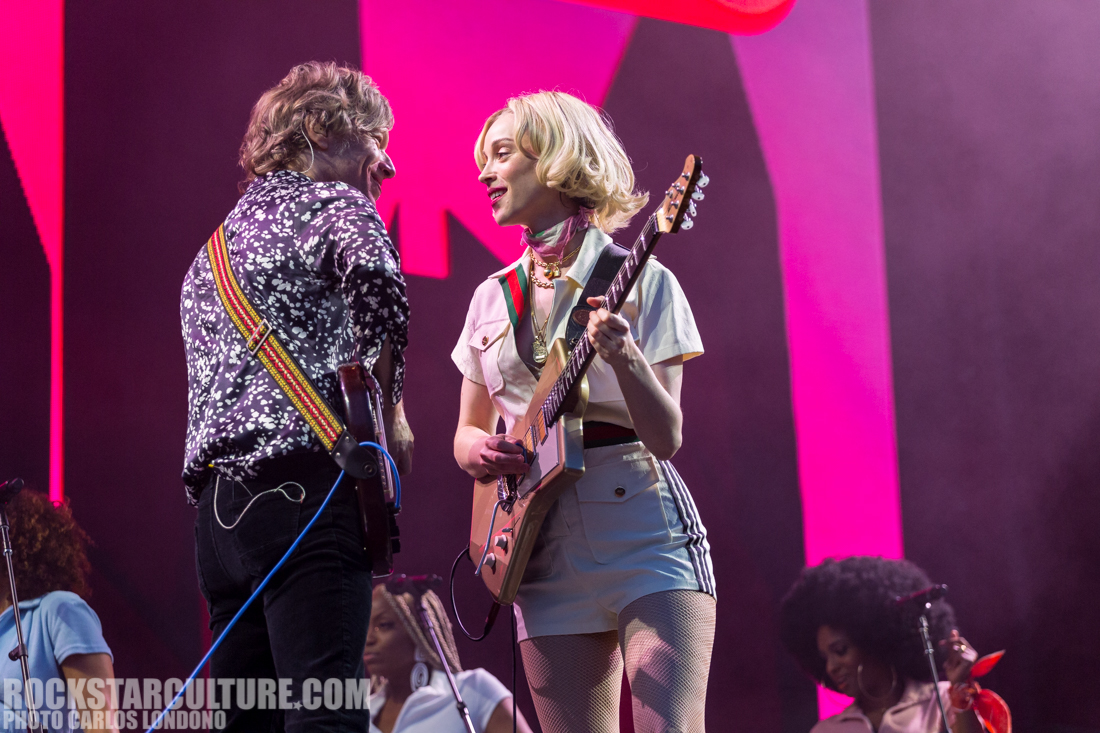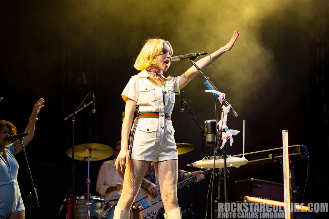 Up next, St Vincent got the crowd on their feet dancing. Her live performance was so much fun to watch. She had two charismatic guitarists that were very entertaining to watch and some really amazing backup singers. I wasn’t familiar with her music but found myself dancing along also. She had a great stage presence and the vocals to match, making her performance electrifying!